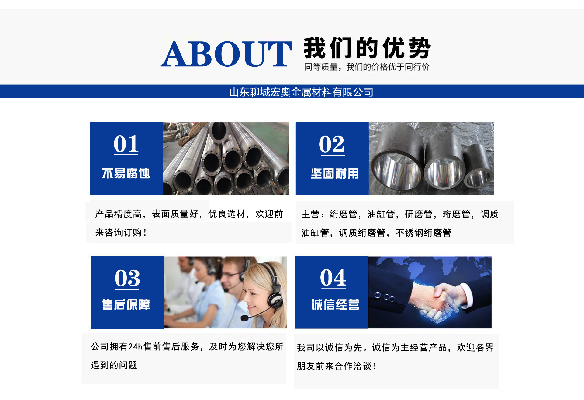 絎磨管,油缸管,研磨管,珩磨管,調(diào)質(zhì)油缸管,調(diào)質(zhì)絎磨管,不銹鋼絎磨管-山東聊城宏奧金屬材料有限公司 公司簡(jiǎn)介/ ABOUT